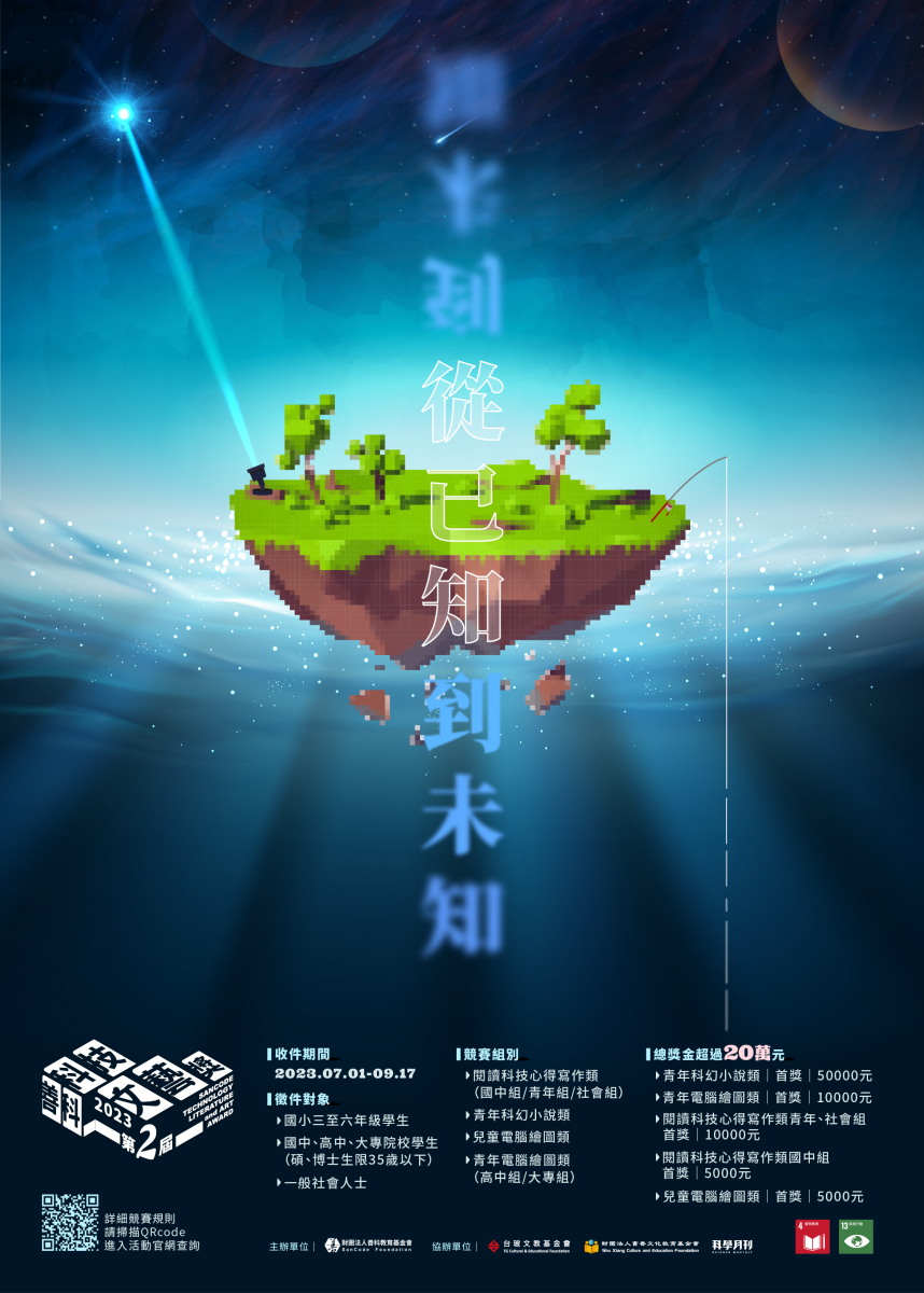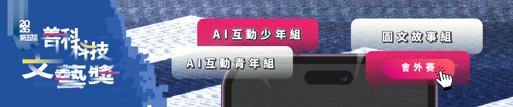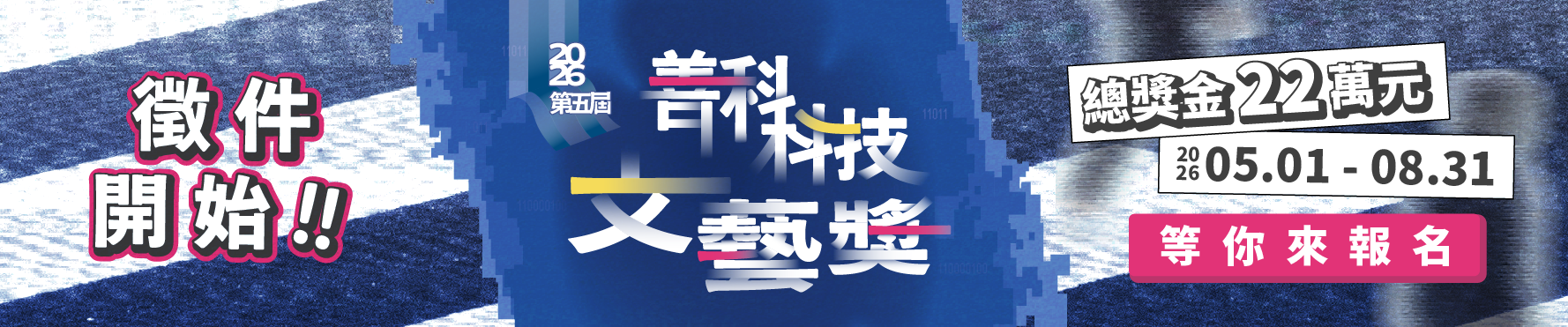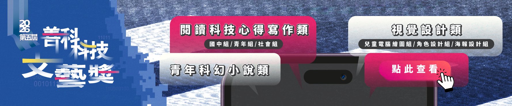 「從已知,到未知」,善科邀請各位朋友一起搭上科技人文的列車,一起學習過去並想像未來,如今的便利生活是前人的思想結晶,而未來的全新世界,將由現在的我們聯手開創,透過閱讀學習知識,用小說構築新世界,以繪圖串連過去、現在與未來,今年的「善科科技文藝獎」,有大家的作品才精彩!